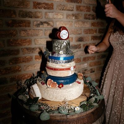 A cheese celebration cake is a selection of cheeses stacked to give the effect of a traditional tiered cake and has become a very popular alternative to a traditional cake for weddings and other celebrations.