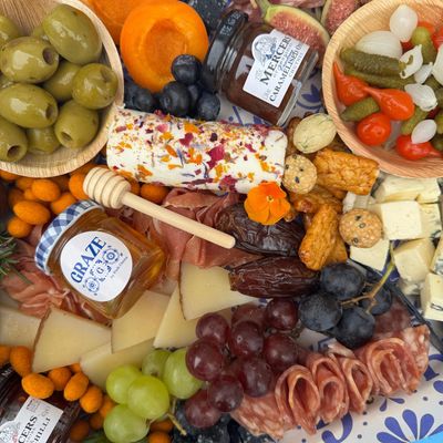 Perfect to take along with you or when time is short, these Graze platters are delivered ready to enjoy. Presented on a sustainably sourced palm leaf platter, they really are the perfect accessory to any event. Our classic graze, good to go. Bursting with artisan cheeses, continental charcuterie, bread, crackers and antipasti. Decorated with beautiful seasonal fruits, fresh flowers and herbs.